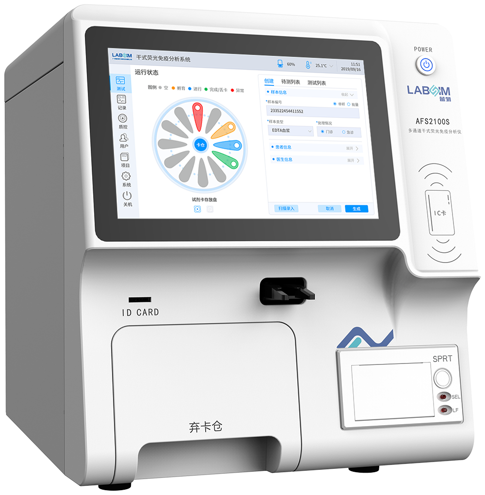 碟照的UI构想界面显示 | 12自力孵育检修通道 | 內置化学试剂卡弃卡仓 | 主动的权感到恐惧采血管卡拨出来、主动的权丢卡 | 内置式热敏彩打机被动彩打测试成绩